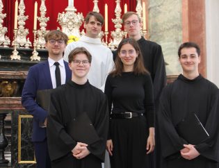 Vier Kapellknaben beenden in diesen Tagen ihre Schulzeit. Damit endet auch ihre Zeit im Knabenchor. Zur feierlichen Auskleidung dankt der Bischof für ihren Dienst.